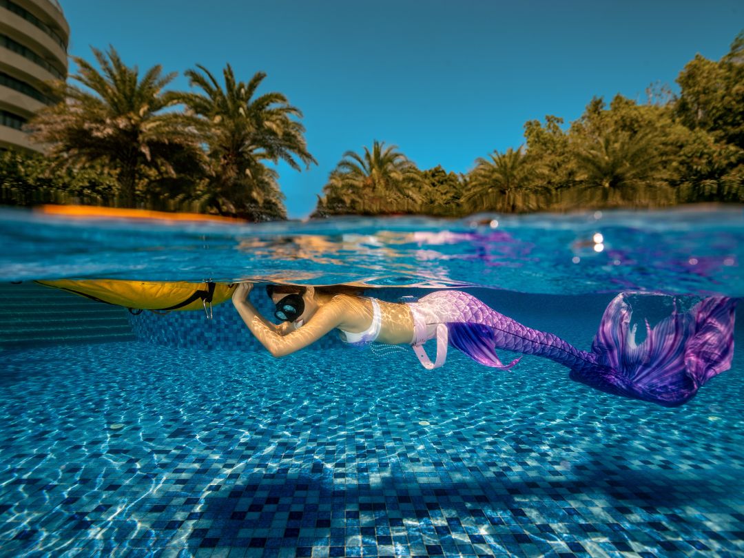 - A confined water (pool or pool-like location) session to learn and practice basic mermaid diving skills, problem prevention and handling, and how to make mermaid dives